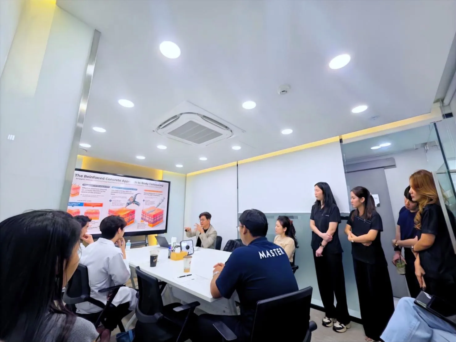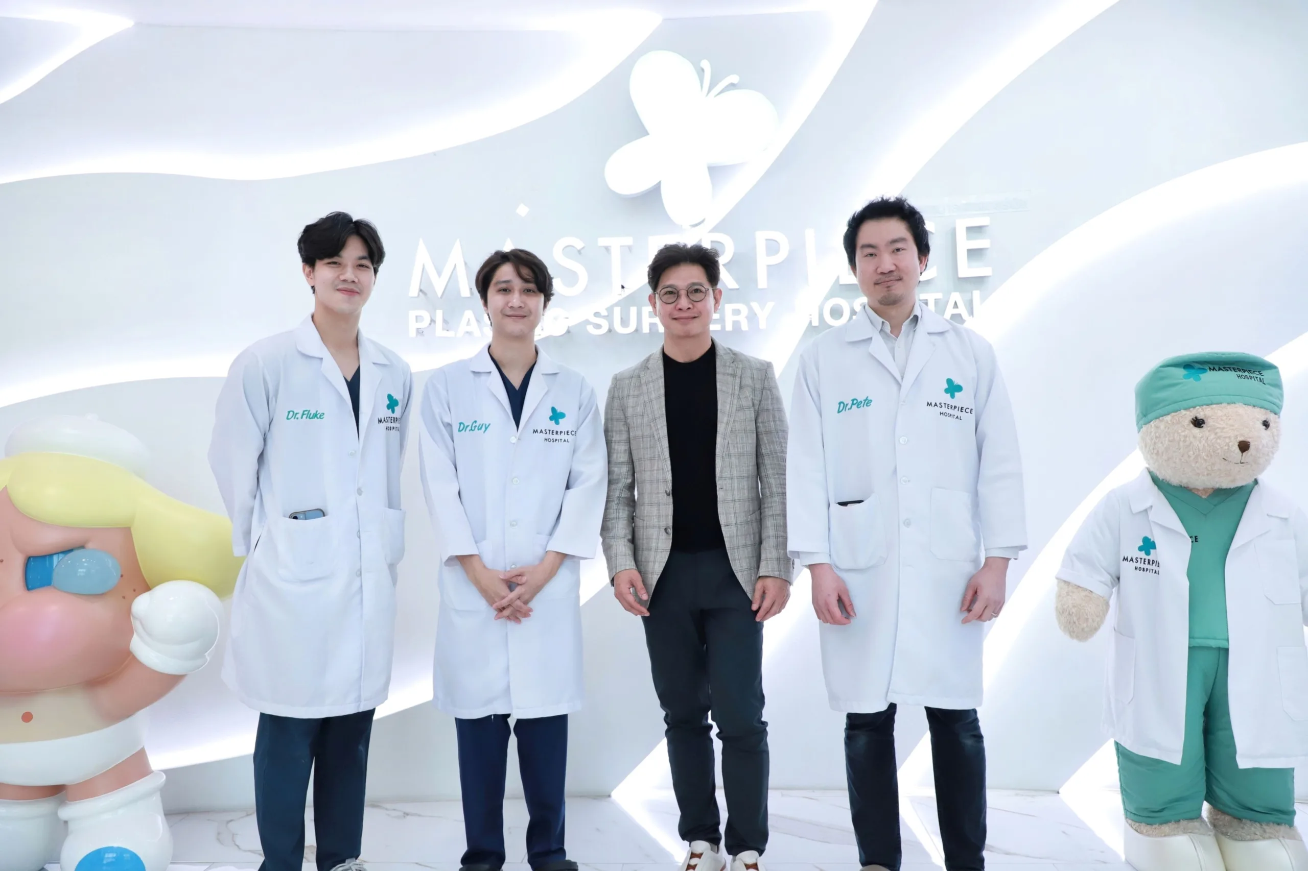 พร้อมด้วยทีมแพทย์จากโรงพยาบาลมาสเตอร์พีช ได้แก่ หมอกาย-นพ.ณัฐดนัย ชาวชายโขง แพทย์ประจำศูนย์ดูดไขมัน หมอพีท-นพ.ภัทรเดช เจียมสว่างพร แพทย์ประจำหัตถการดูดไขมัน หัตถการจมูก และผิวพรรณความงาม และหมอฟลุ๊ค-นพ.คณิน สมศิริวัฒนา แพทย์ประจำโรงพยาบาลมาสเตอร์พีช ร่วมด้วยทีมบุคลากรด้านการขายเข้าร่วมเวิร์กช็อปในครั้งนี้ด้วย
