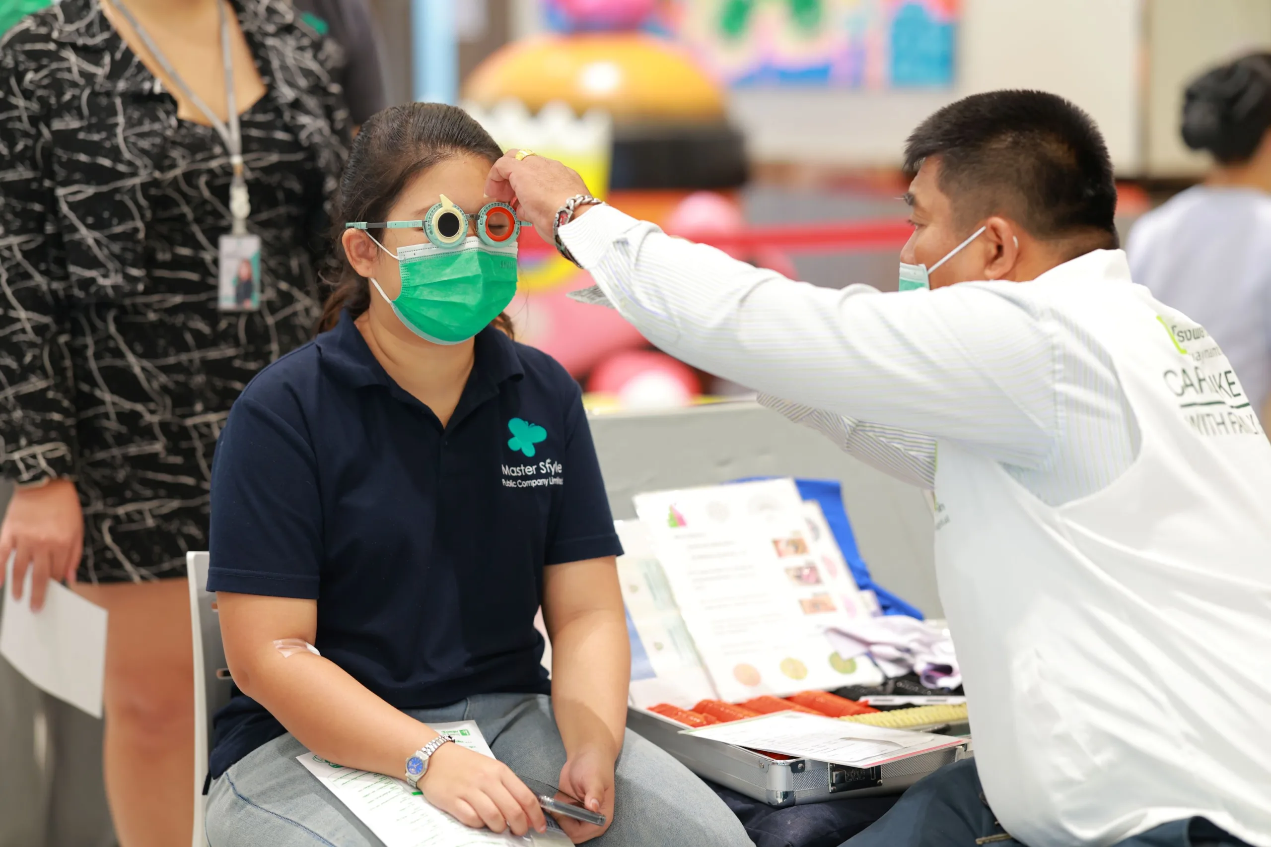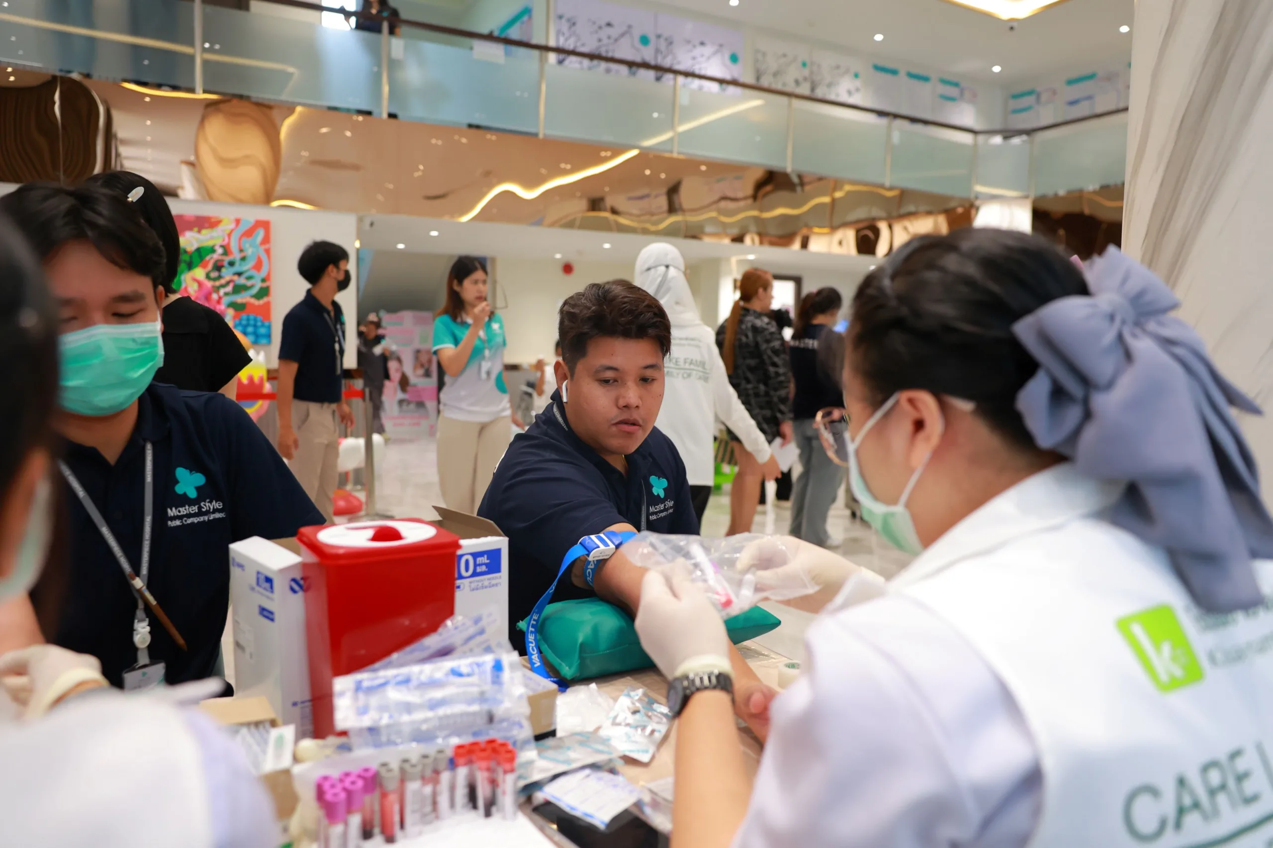 โดยครั้งนี้ได้รับการบริการตรวจสุขภาพจากโรงพยาบาลกล้วยน้ำไท จัดให้มีจุดตรวจ อาทิ ชั่งน้ำหนัก-วัดส่วนสูง วัดความดันโลหิต ซักประวัติสุขภาพ เจาะโลหิต ตรวจคลื่นหัวใจ เอ็กซเรย์ทรวงอก ตรวจวัดสายตา และให้คำปรึกษาด้านสุขภาพโดยแพทย์ เป็นต้น ณ โถงชั้น 1 อาคาร 3 บมจ. มาสเตอร์ สไตล์