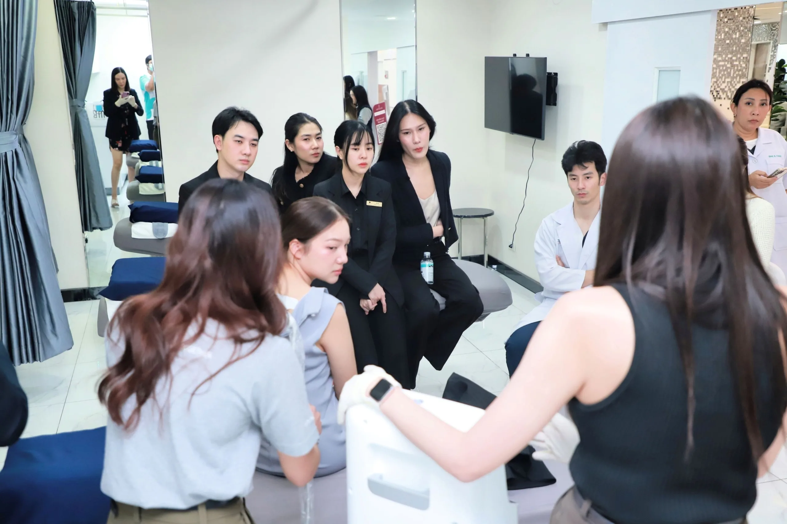 โดยมีคณะแพทย์ อาทิ หมอฟลุ๊ค – นายแพทย์คณิน สมศิริวัฒนา, หมอปัน – นายแพทย์ปัณณธร อิทธิอมรกุลชัย แพทย์ประจำโรงพยาบาลมาสเตอร์พีช และทีมพนักงานขาย SKIN MASTER เข้าร่วมในการเวิร์กช็อปในครั้งนี้ด้วย เพื่อให้ สามารถเข้าใจคุณสมบัติของเครื่องได้อย่างถูกต้อง และนำไปประยุกต์ใช้ในการให้คำแนะนำแก่ผู้รับบริการได้อย่างเหมาะสม