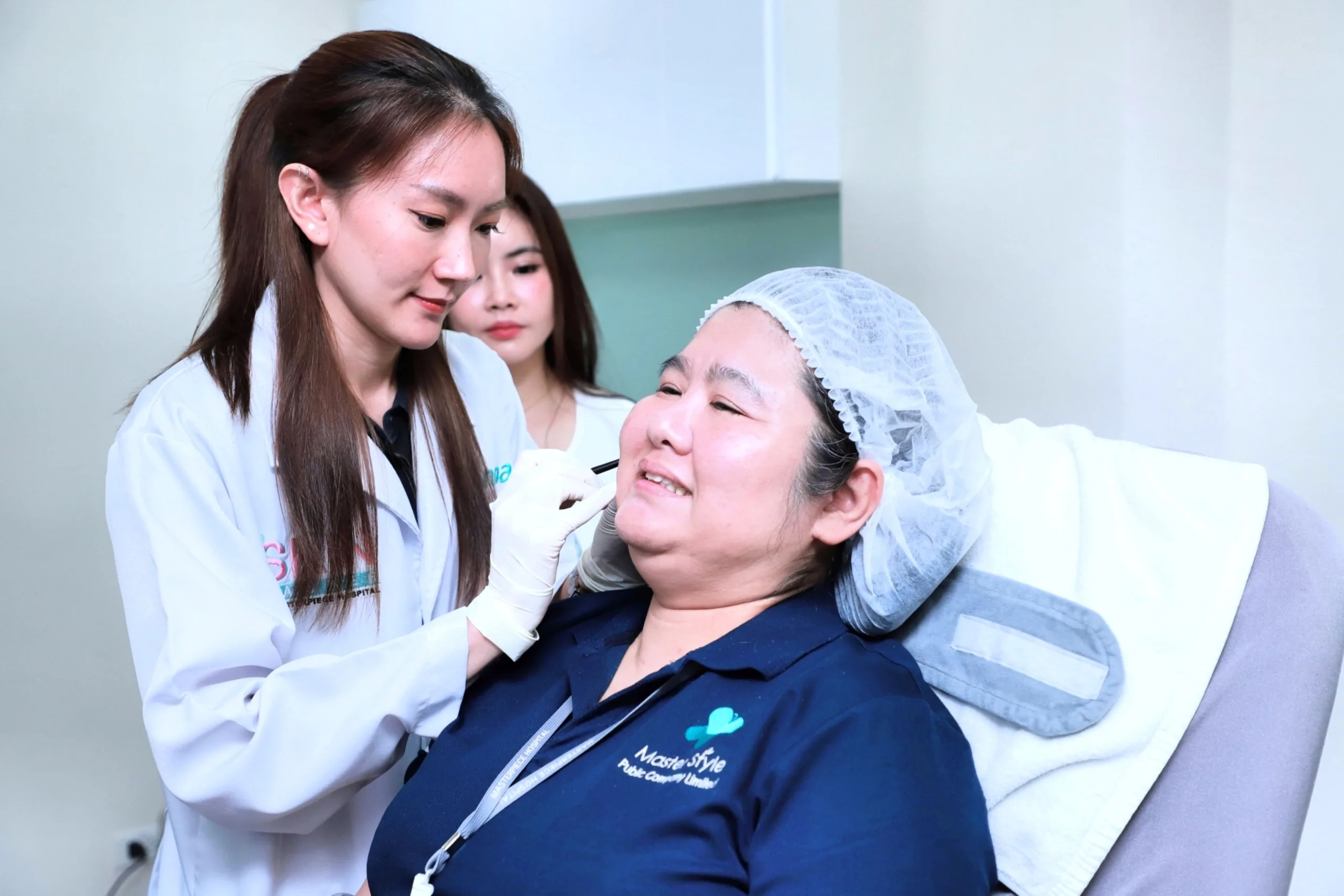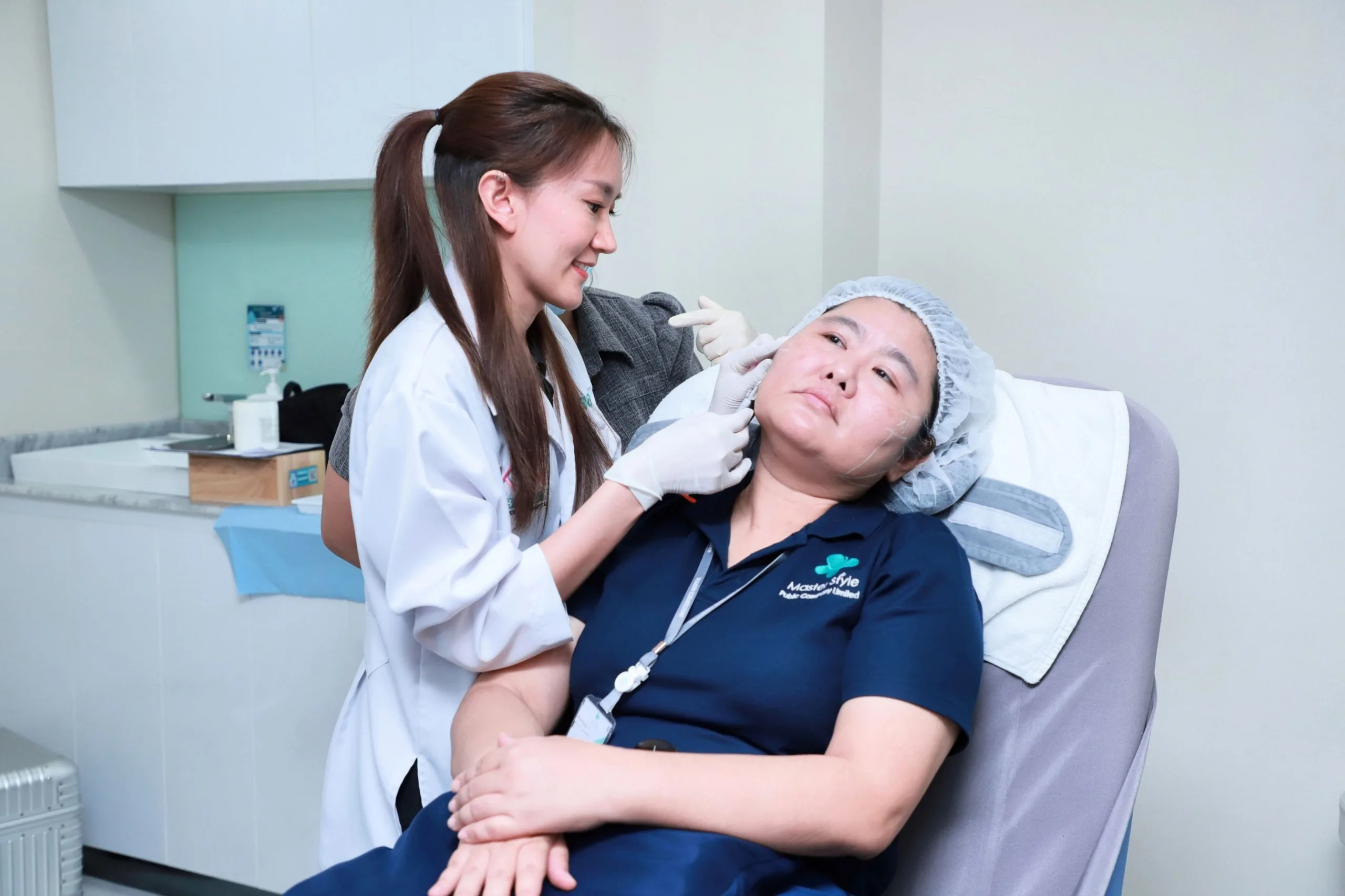 ภายในงานมี หมออันนา – แพทย์หญิงกชกร ประทีป แพทย์ผู้เชี่ยวชาญด้านผิวพรรณความงามและการปรับโครงหน้าแห่ง SKIN MASTER by Masterpiece Hospital พร้อมด้วยทีมพนักงานขาย SKIN MASTER เข้าร่วมกิจกรรม ซึ่งเป็นการอบรมเชิงปฏิบัติการให้แก่คณะแพทย์และบุคลากรทีมขายของ MASTER โดยมี คุณแอ้ – พันทิพา ธรรมจรรย์ ผู้จัดการฝ่ายจัดซื้อจัดจ้าง ร่วมเป็นเคสตัวอย่างให้แพทย์ได้ทดลองฉีดจริง เพื่อถ่ายทอดประสบการณ์ แนวทางการรักษา และมาตรฐานความปลอดภัยอย่างใกล้ชิด